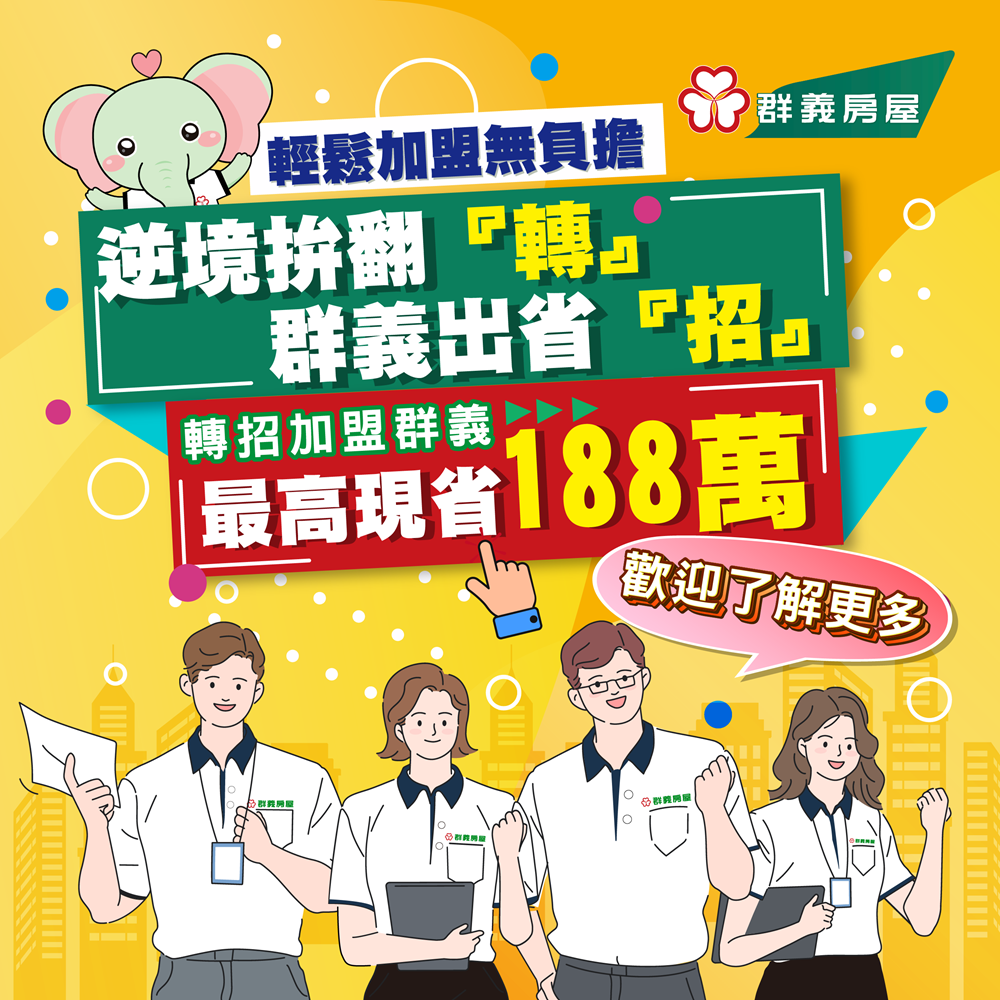群義房屋創立在房仲業的戰國時代,由一群堅持「愛家文化」及「團隊合作分享」文化的股東們一同奮鬥而創立。歡迎精英專業團隊,共創品牌新合作加盟,加盟群義房屋,享受最強後勤支援,9大加盟優勢,開創合作雙贏局面!!