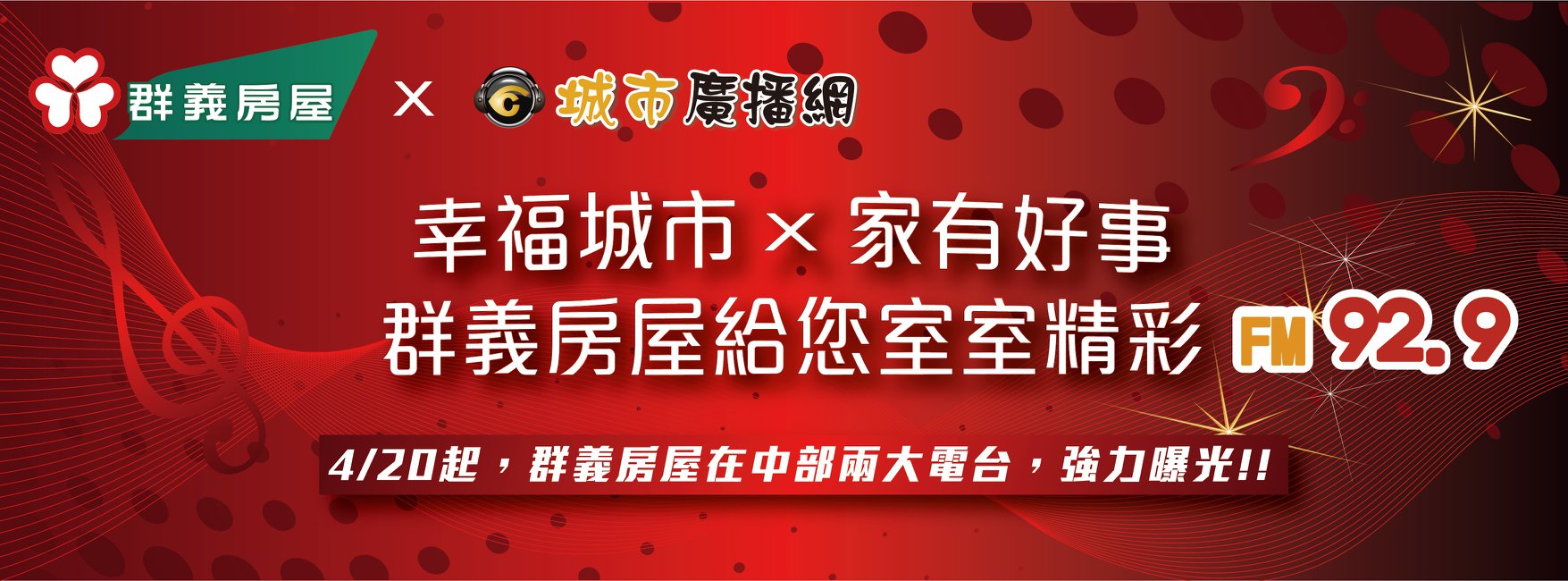今天起(4/20),群義房屋的廣告將在中部兩大電台🎙🎙【城市廣播網】FM92.9與【好事聯播網】FM90.3 強力曝光啦‼透過綿密的空中網路🎧,將迅速拉近群義與您的距離💞