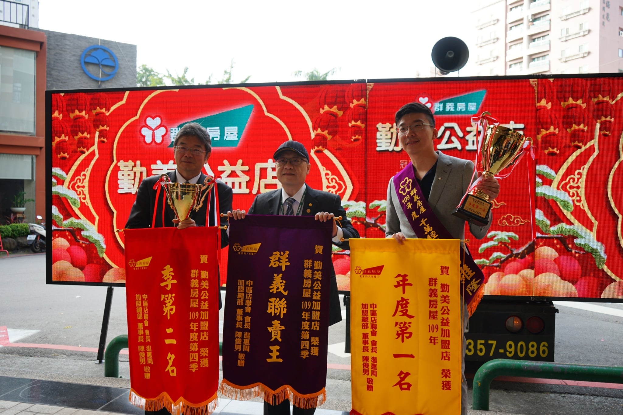於是,我們決定出動頒獎專車與多位工作人員🚛,用了整整兩天的時間,巡迴中區14家分店🇸🇦,由陳董事長與楊勝閔副總,親自把榮耀送到各位面前🎖,表達群義房屋總部對各位得獎者的肯定與敬意👍,儘管辛苦,但這份殊榮,絕對值得我們這樣做💪💪💪