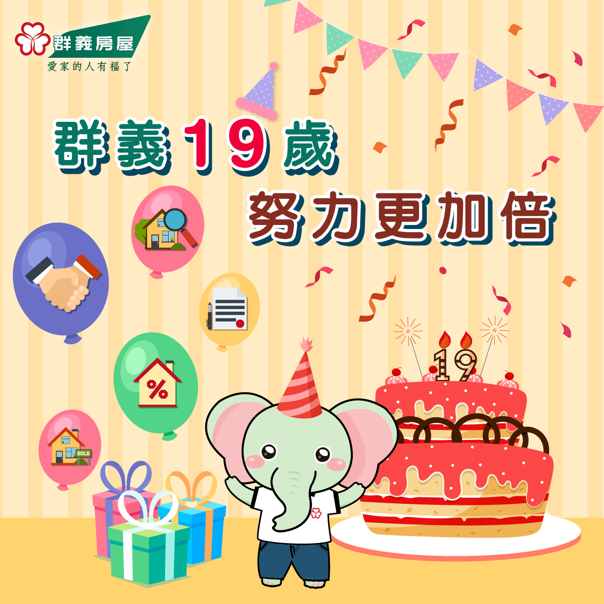 群義房屋正式邁入19歲囉~😘,19年來,感謝大家對我們的支持與愛護,讓群義房屋可以持續成長、穩健茁壯💪,如今,我們在全台灣的服務店數與同仁數都大幅增加,這都代表著社會對群義房屋的認可,我們深深感謝🙇♂️