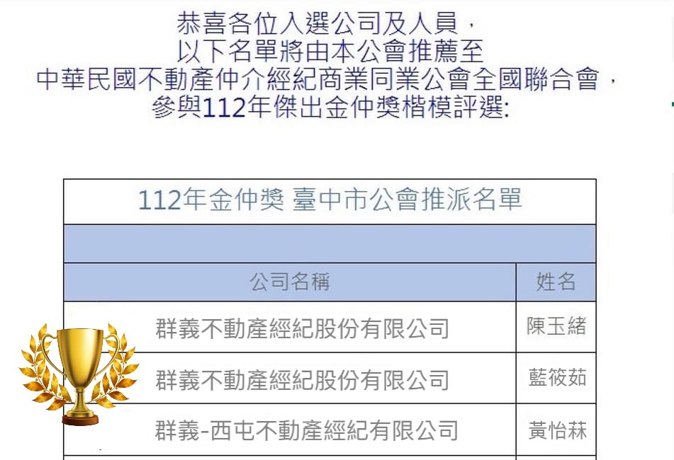 放榜啦🧧~~延續上一屆的火熱,恭喜群義房屋再度榮獲金仲獎的肯定🏆而且再次一門三傑👍