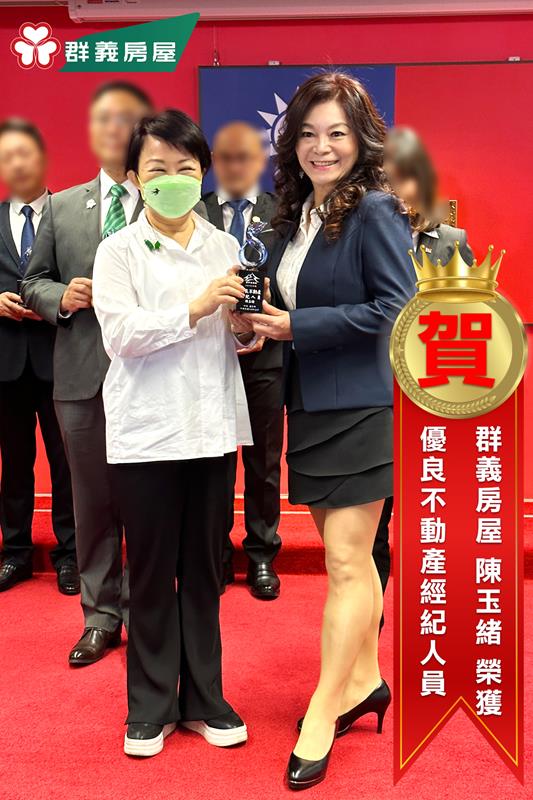 』後,群義房屋全國旗艦店陳玉緒專案協理,再榮獲『臺中市112年優良不動產經紀人員