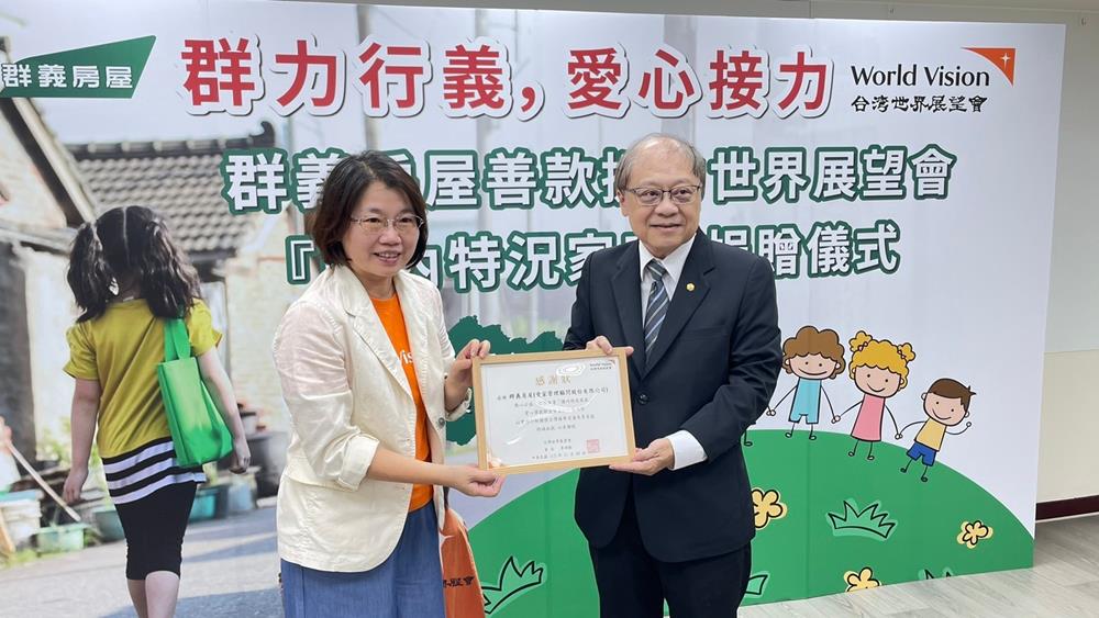 今天(11/8),群義房屋特地於總部教育訓練中心舉辦【公益善款捐贈儀式】,由陳俊男董事長代表將同仁們匯聚的愛心善款,交由台灣世界展望會接手投入【國內特況家庭】的照顧工作,而世界展望會中區辦公室的胡婉雯區處長也回贈感謝狀,來表達對群義房屋長期以來支持弱勢的感謝🙏